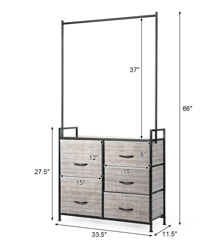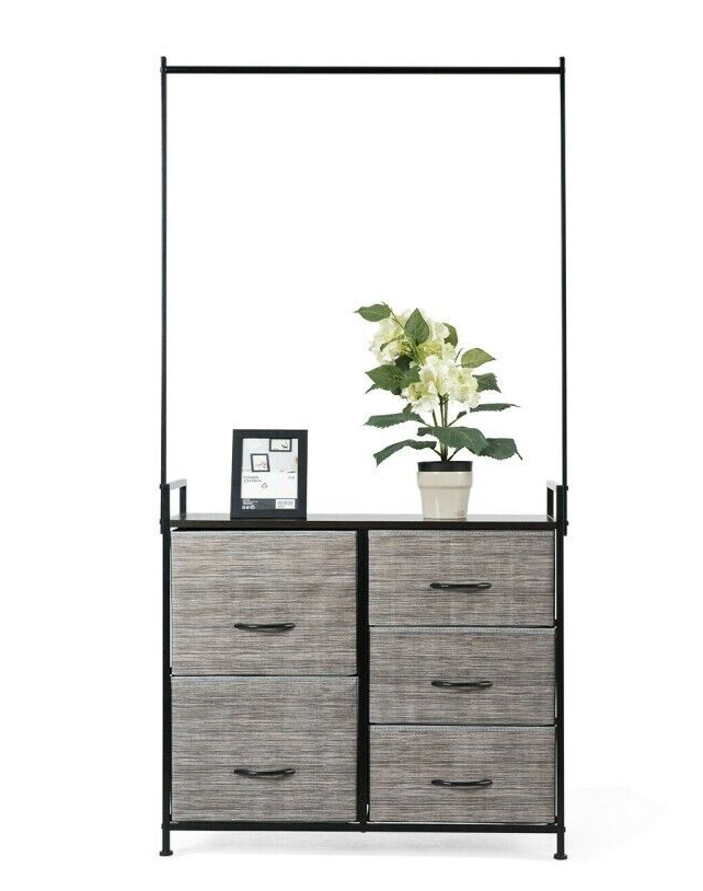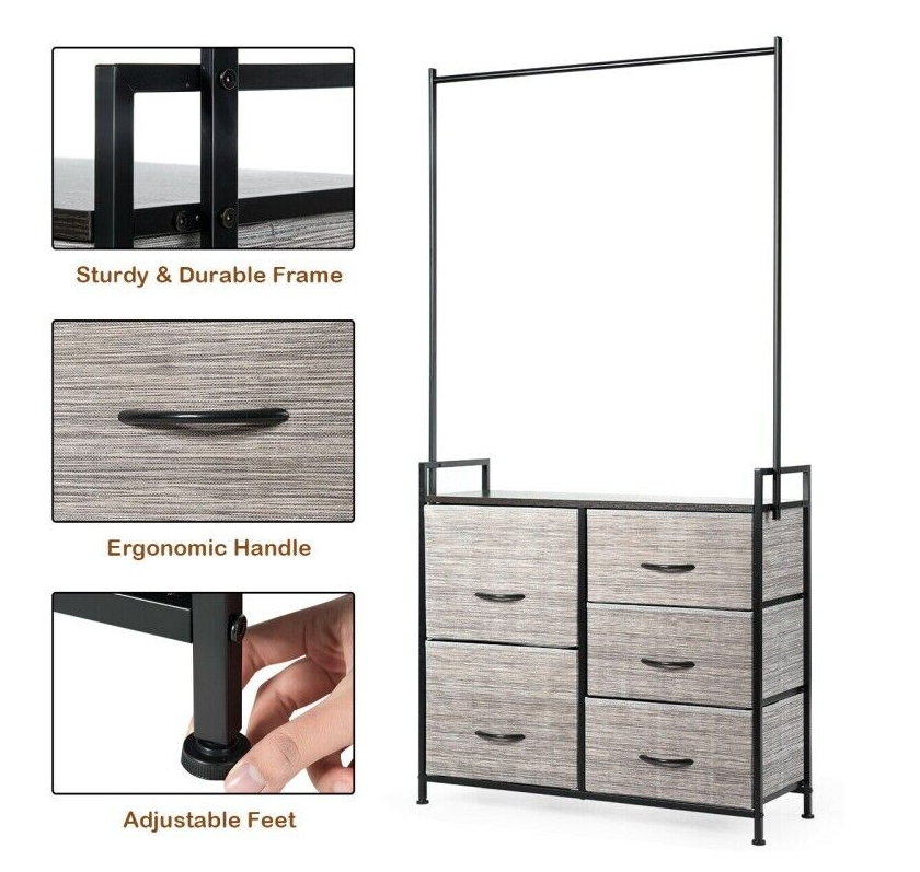 Dresser Hanger Metal Frame Wooden Top Storage Closet Organizer 5-Fabric Drawers