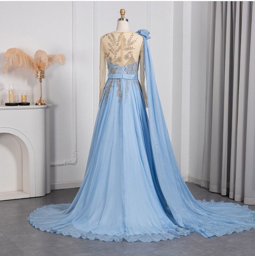 Luxury Beaded Dubai Blue Evening Dresses Wedding Guest Elegant Arabic Party Gown
