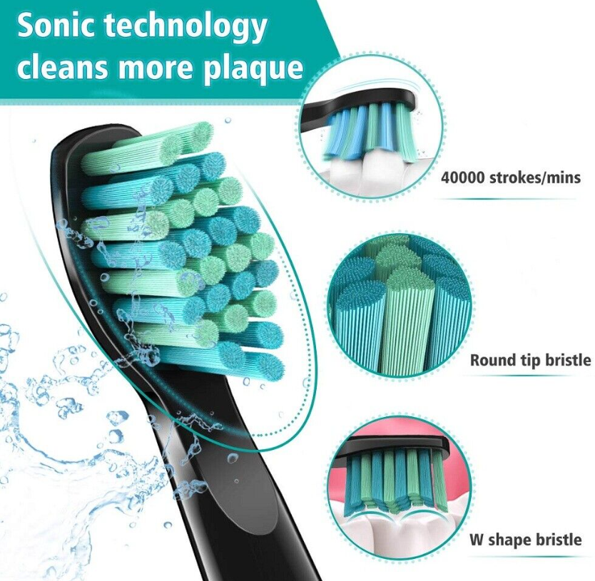 Sonic Electric Toothbrush Rechargeable 4x Brush Heads 507 Black Precise Cleaning