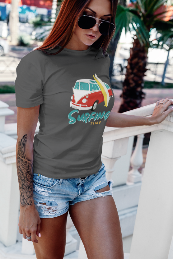 Surfing Time VW Bus Sea Summer Paradise Womens Mens Unisex Short-Sleeve T-Shirt