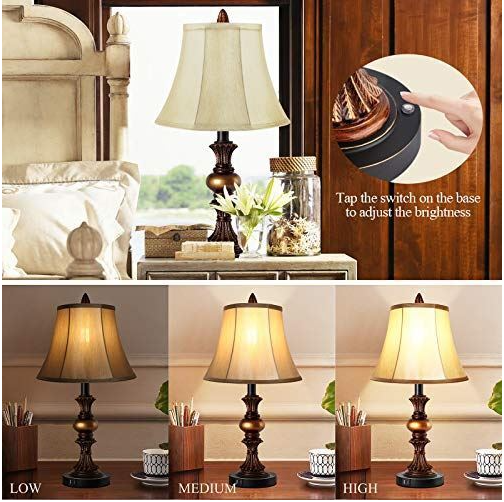 Touch Control Traditional Table Lamp Set of 2, Vintage Bedside Lamps with Dual U
